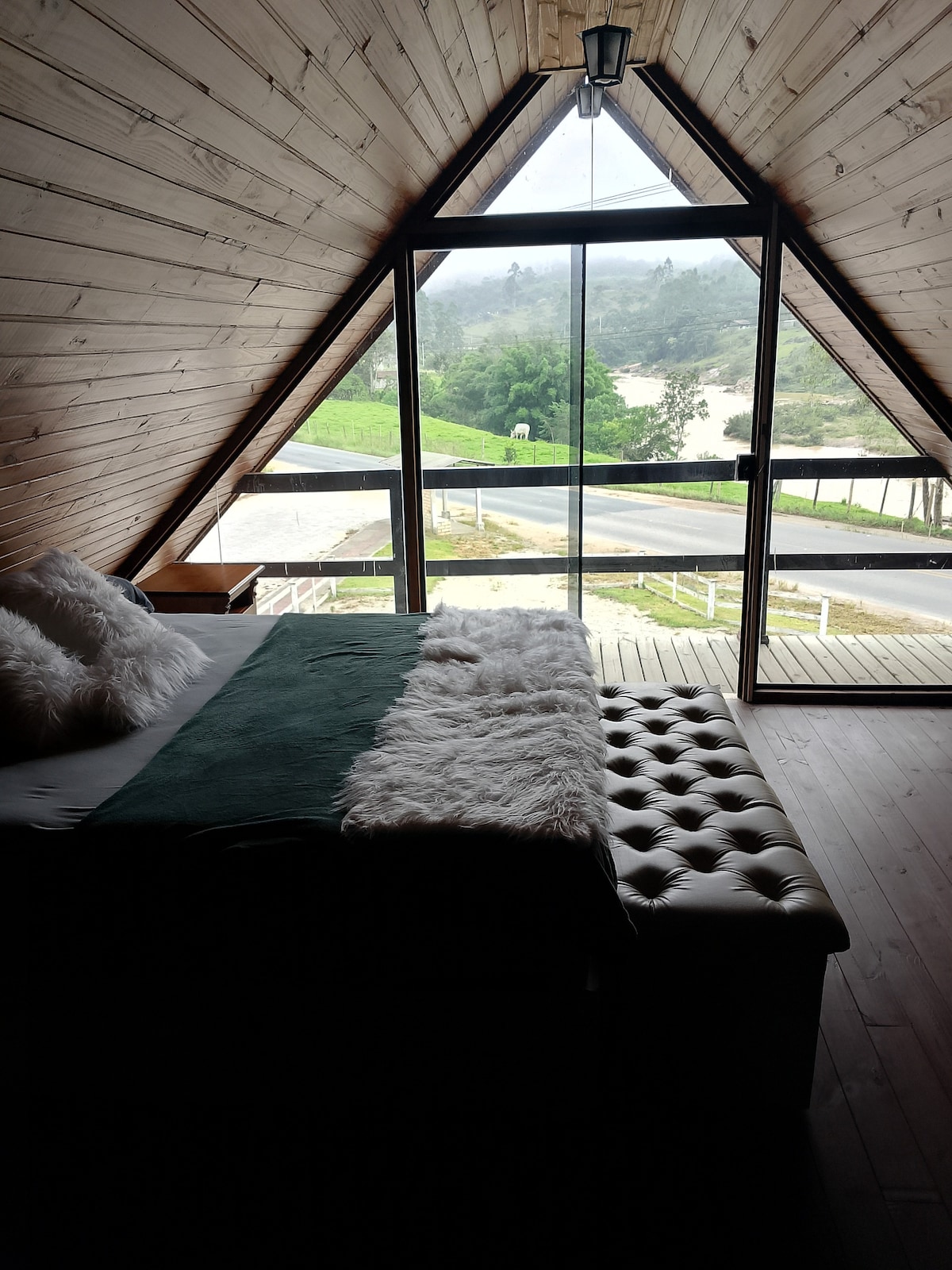 Located 15 km from the center of Urubici, this cabin is surrounded by nature overlooking the Cachimbo River. We have an exclusive space with a fire pit near the river and a spacious deck to enjoy the natural beauty of the place. The cabin is a refuge space that accommodates up to two couples, one in a private room and the other in the mezzanine, in an open space. Because it is a rural area, there is no telephone network, only fiber internet access.