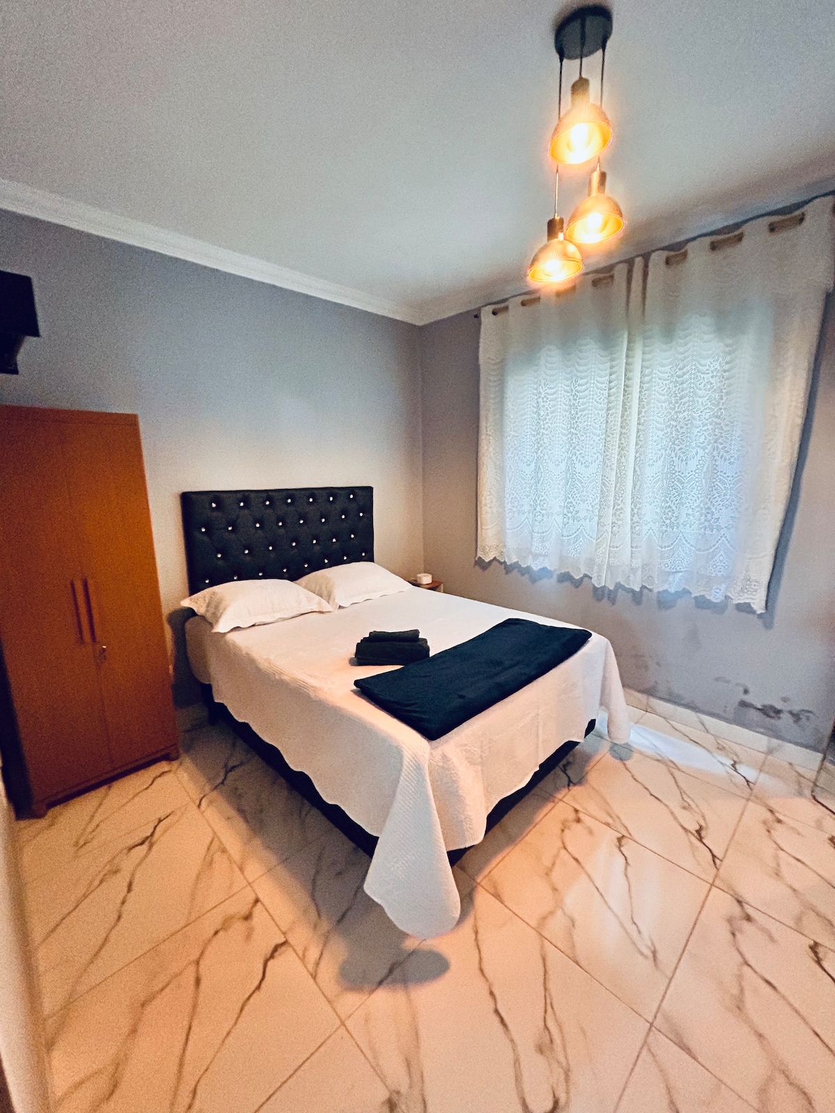 Clean and cozy environment Next to the Administrative City and Atlético City 15 minutes from Cofins airport, 01 Super comfortable room, double bed 1 bedroom with a single bed Plus 2 mats 1.80 m x 0.60 m D33 Living room with sofa, Smart TV and Wi-Fi Integrated dining room Kitchen with fridge, cooktop, air fryer and kitchen utensils Area with washing machine and tank Iron 1 garage space Condominium with court and playground. 24-hour doorman We do not offer towels