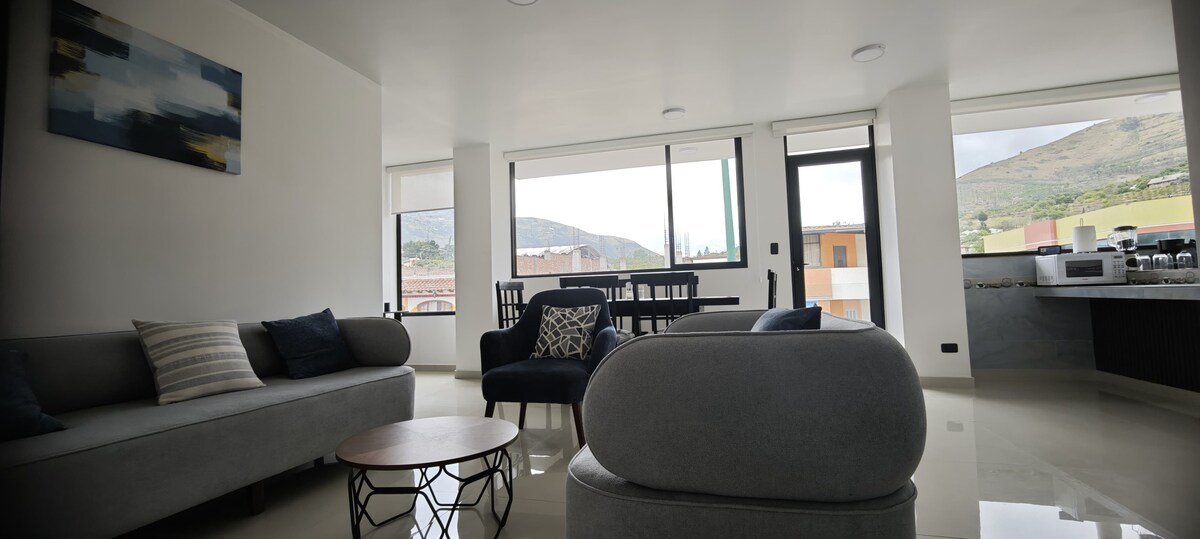 Discover a space where elegance meets warmth. At Estancia Exclusiva R&M we offer you a modern and cozy apartment, fully equipped in Pelileo, Ecuador. Perfect for families, couples, or groups, our accommodation combines comfort, style, and hospitality, giving you a unique experience with the charm of the region.