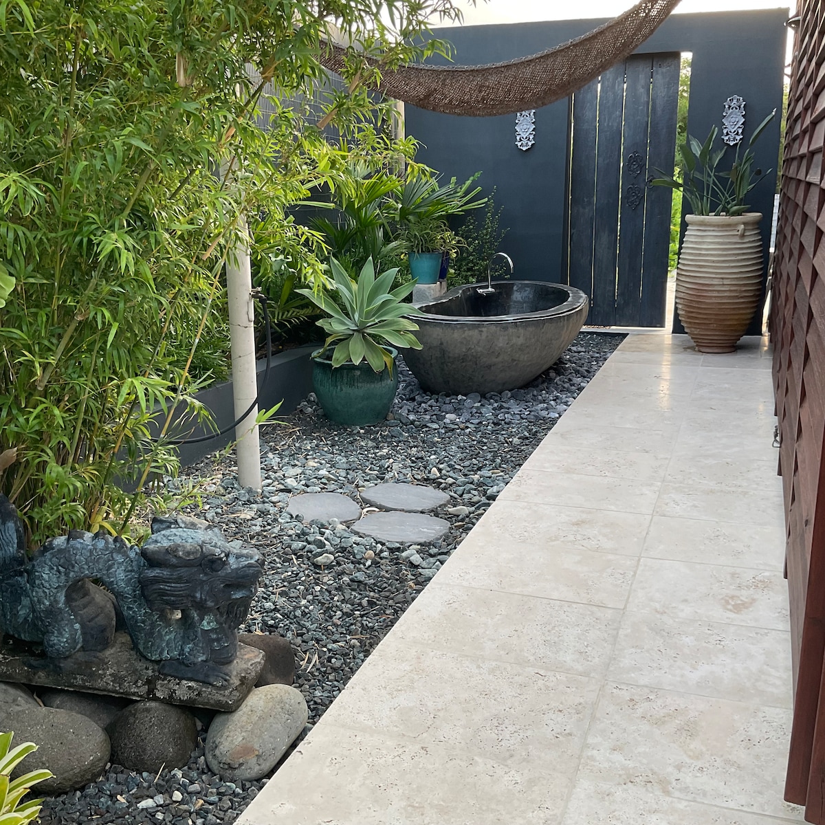 Escape the routine in our charming house for 2 adults, located near stunning beaches, surf spots, and cliffside hikes. Our cozy interior in the heart of a tropical garden and its exotic setting will delight you. Relax under the starry sky in our outdoor bathtub surrounded by lush greenery. The sunrises and sunsets from Chapel Beach are simply magical! Book your piece of paradise now.