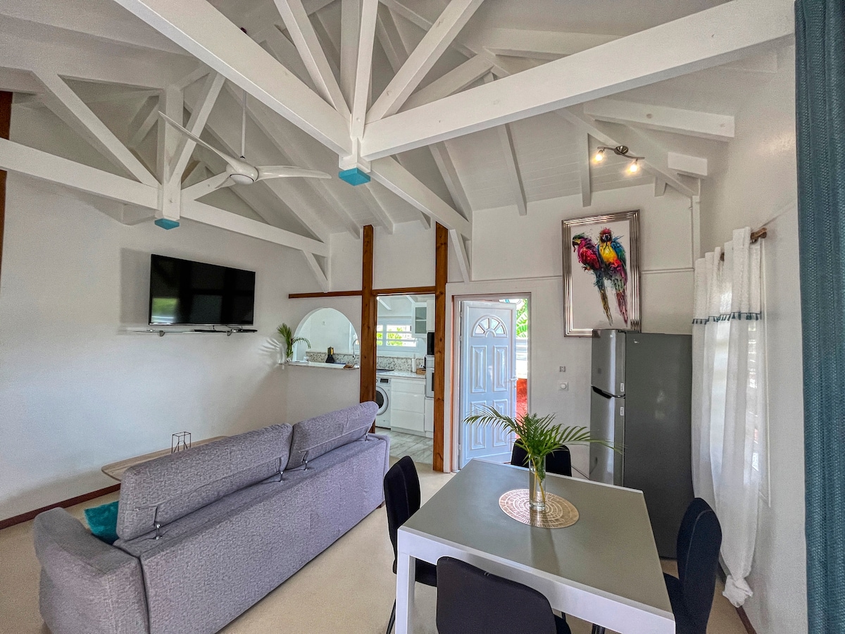 Relax in this brand new, comfortable cottage! Located 10 minutes from Le Moule and 15 minutes from the beaches of Port-Louis and Anse Bertrand. You will benefit from the entire quiet and elegant accommodation with an area of 30 m2 and a terrace of 15 m2. It includes a large air-conditioned bedroom with plenty of storage, a bathroom with walk-in shower and a living room with a sofa bed. The kitchen is fully equipped and has a serving hatch that opens onto the terrace.