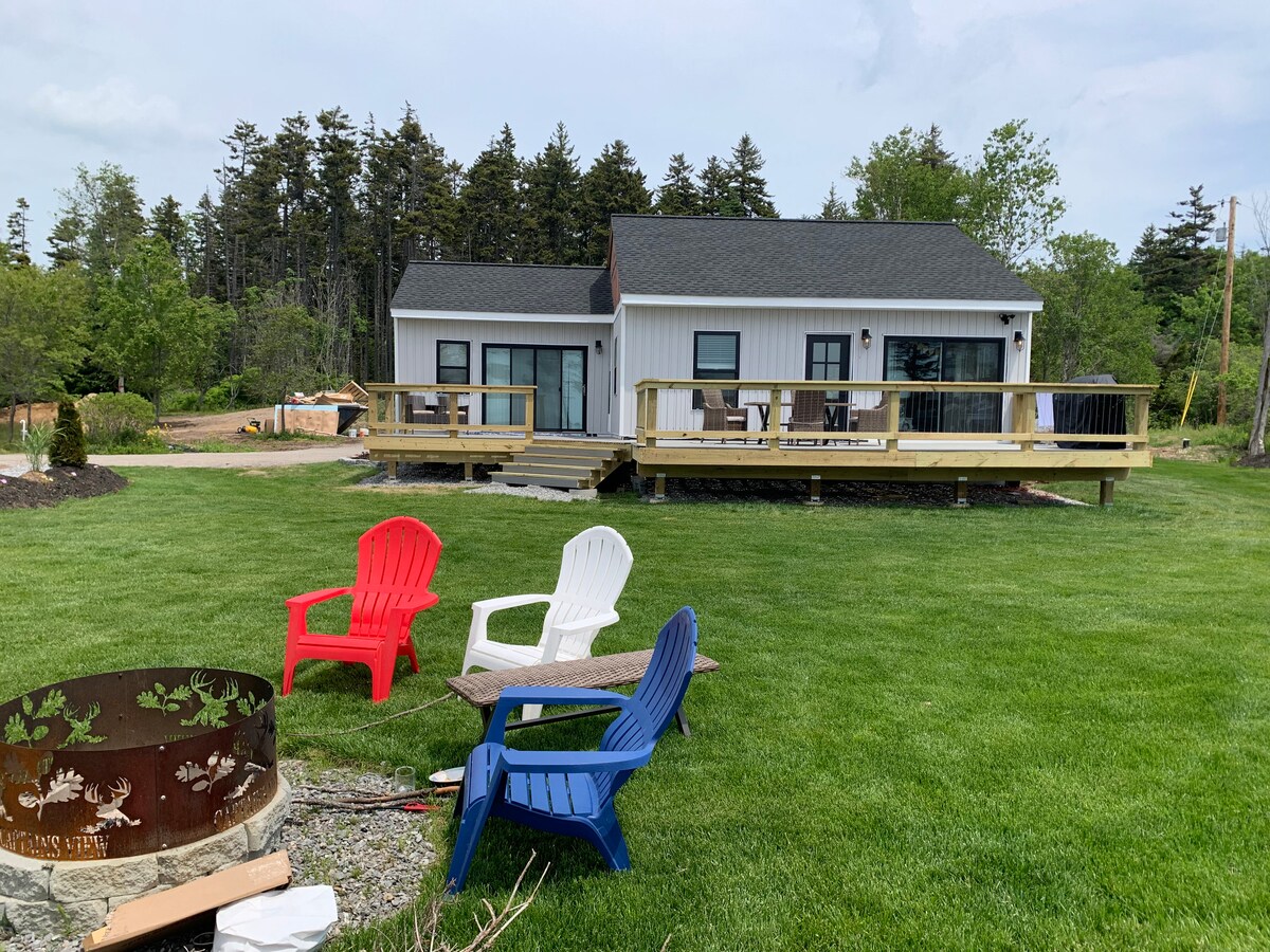 Bright open four-season guest house with fantastic view of Jones Cove and the open ocean in beautiful South Bristol, Maine. The guest house offers privacy and independence. The top floor has an open space with kitchen, sleeping area with queen bed, bathroom. The ground floor has a desk, Smart TV, seating area and French doors that open onto a stone patio. Includes Kohler generator, fiber optic wifi, outdoor grill & fire pit. The water is tidal Owner lives on property (150 ft from guest house)