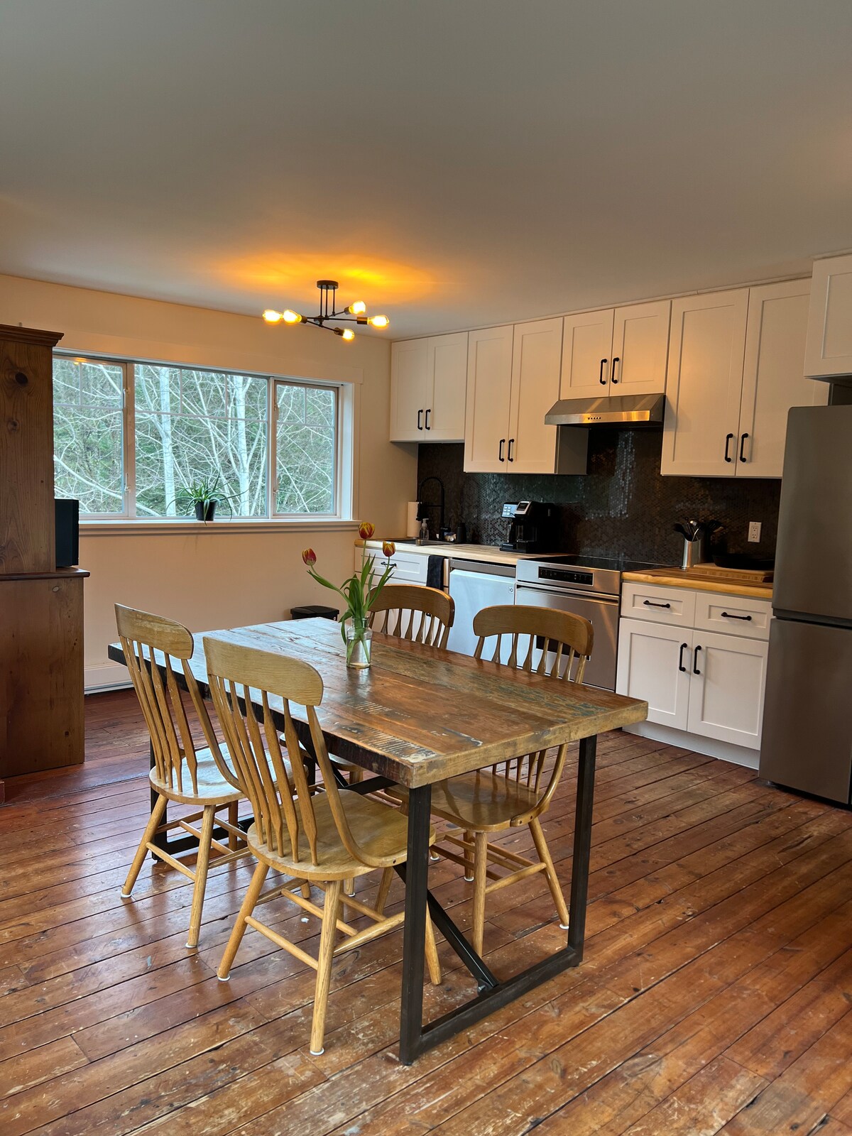 Our 5 acre property is nestled beside the Ryan River and on the edge of a large cedar forest. We are surrounded by organic farm stands and a 5 minute walk to the Beer Farmers. Relaxation, family fun or adventure, this will delight. Grab the cruiser bikes to ride the country road, ride the world-class mountain bike trails or hike the beautiful nearby trails. The chef’s kitchen has a Italian 48 inch range, a super-automatic espresso maker and a custom dining table to share times with friends.