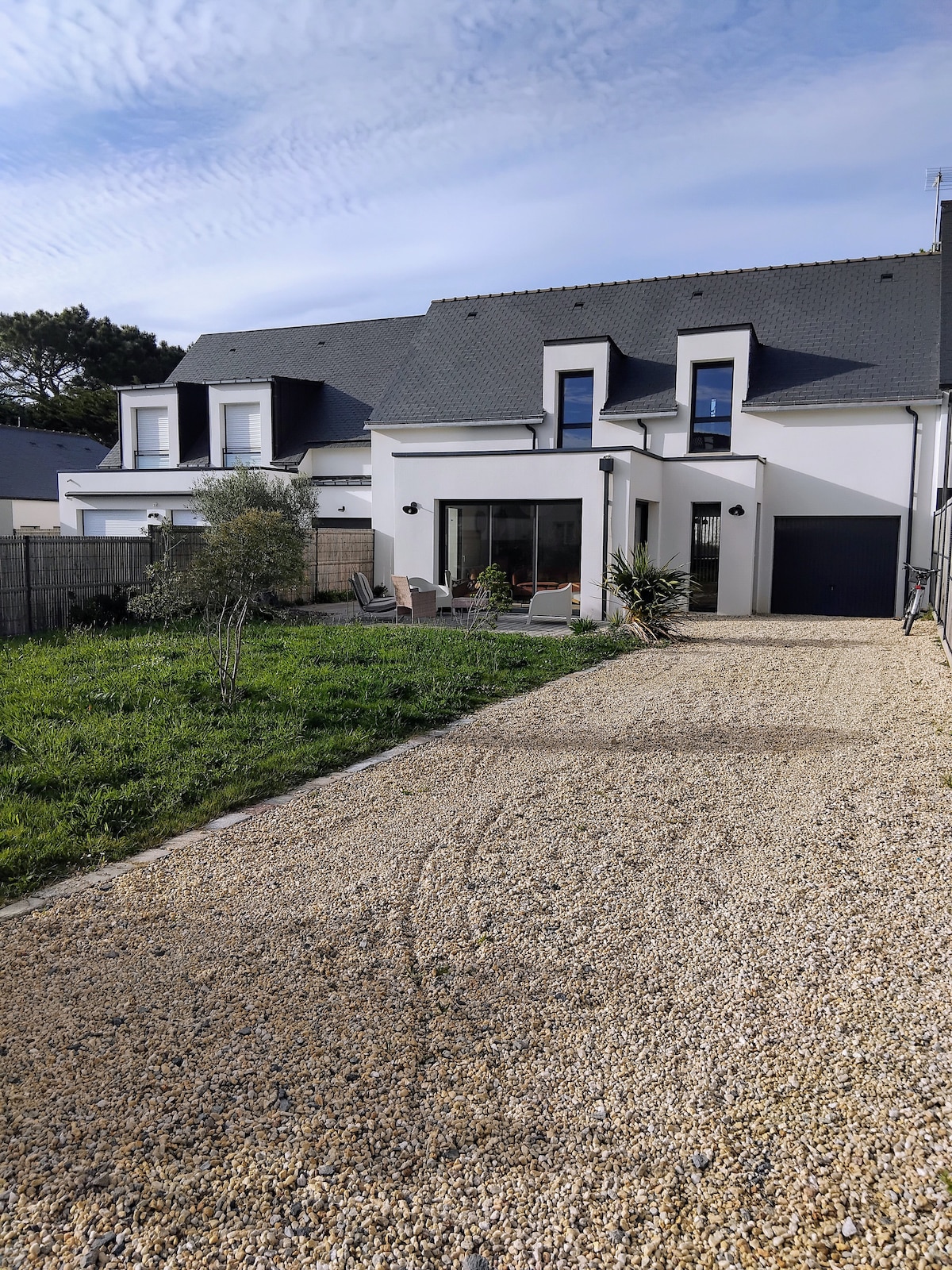 New house 200 meters from Loscolo beach, 30 minutes from La Baule. on the ground floor, a large bright living room with garden view and sofa, open kitchen, 1 master bedroom with private shower room, toilet Fully equipped kitchen with great comfort: oven, stove, hood, microwave, food processor, coffee maker, kettle, toaster Upstairs: 2 bedrooms + 1 mezzanine 1 bathroom, toilet 4 adult bikes available, Pingpong