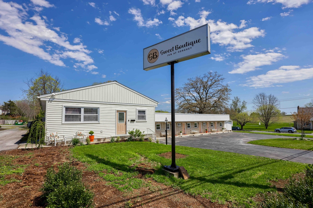 The Sweet Boutique Inn at Hershey is newly renovated and is a quiet place of rest! Choose from our 7 themed rooms, each having it's own unique delight, offering comfortable beds and luxury style with a throwback of when things were more simple Click on my profile to view all rooms Or check out our website at sweetboutiqueinnathershey Our specific location is truly special,just off Route 422 yet located in a quaint residential area,only 3 miles from Hershey Park and other attractions
