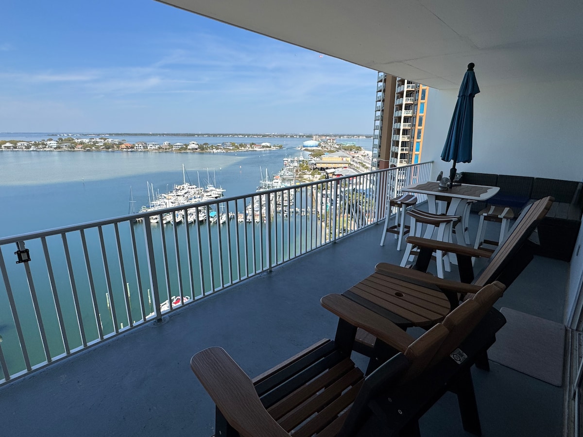 Come experience vacation paradise at "Sunshine Daydream" Located in the heart of Pensacola Beach. Perfect beaches, fantastic restaurants/bars, and shopping are only steps away. Enjoy pristine views of Little Sabine Bay from all over this magnificently renovated condo. Unwind on the 300 sq ft covered balcony and watch the sunset from the best location on the island! The complex hosts a large heated swimming pool, private beach, exercise room, dock, elevators, and a full time cleaning staff.