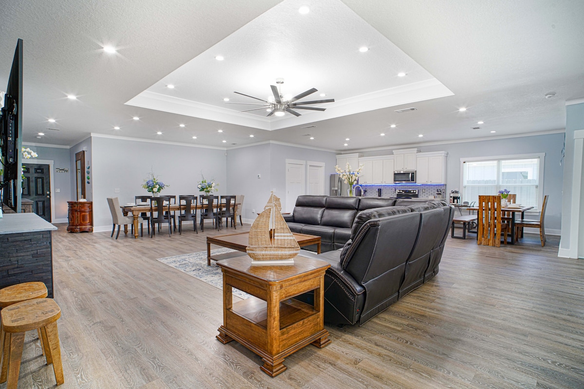 Welcome to our Brand New Luxury Lakefront House, designed for comfort and style. Enjoy a peaceful stay in a quiet, family-friendly, wheelchair-accessible community just 9 miles from Navarre Beach. Enjoy breathtaking lake views, fun game room (ping pong, pool table..), access to a refreshing saltwater community pool. Surrounded by beautiful National Green Belt, it's the perfect coastal escape! Whether it’s a family vacation or peaceful getaway this house has everything you need.