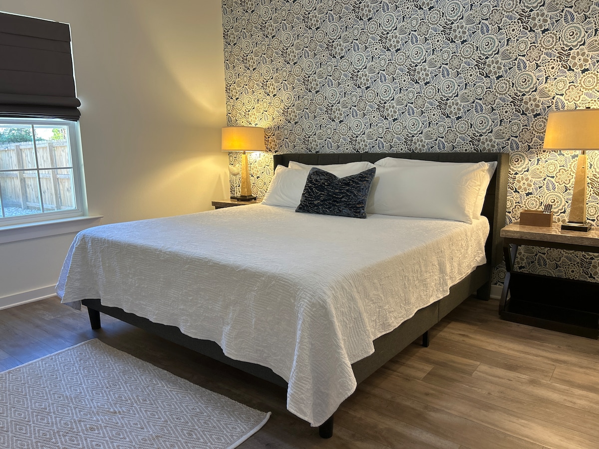 Perfect romantic getaway with king size bed, large jacuzzi tub, and walk in double headed shower. Located just minutes from the airport, downtown and the beach! Walking distance to some of Pensacola’s most unique dining establishments. Private entrance with keyless access. We’ll provide everything you need for a day at the beach - chairs, umbrella, beach towels and cooler. Large screen tv and high speed internet. The suite does NOT have a kitchen. NO SMOKING!