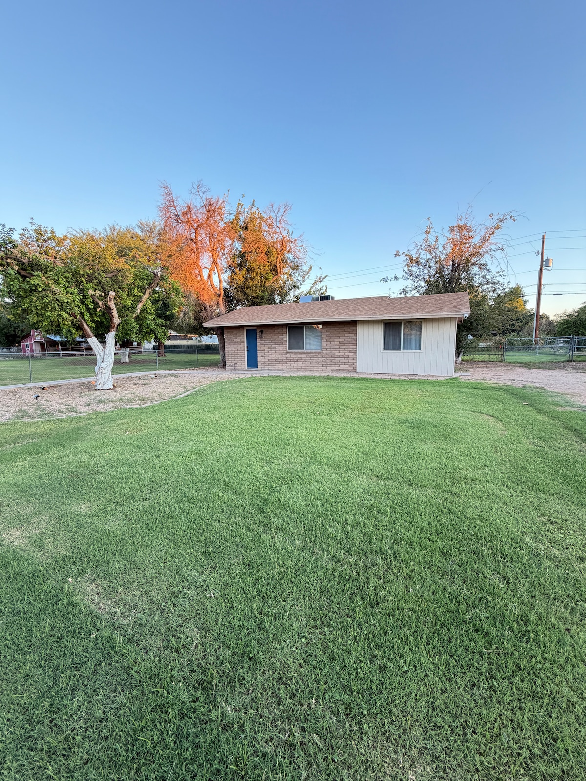 This peaceful gated guesthouse on a 1-acre lot in a quiet farmland community offers privacy and comfort. Enjoy a private entrance, separate driveway, and plenty of parking for 3+ cars. The front yard features a large, gated grass area with a grapefruit tree. Perfect for walks, the street is serene, yet you're just minutes from P83, State Farm Stadium, Peoria Sports Complex (0.9 miles), dining, shopping, and entertainment. Plus, enjoy fast 279 Mbps WiFi!