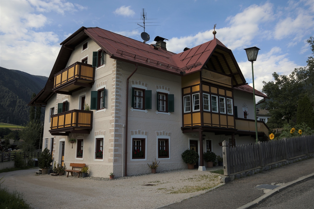 Exclusive use of an entire house, spacious and sunlit 120 m² living area, 3 bedrooms (for four people), 1 kitchen, 1 comfortable living room (with a pull-out sofa, sleeps 2), 1 large bathroom (shower, bathtub, bidet, toilet), 1 separate toilet, 2 balconies, 1 terrace with a beautiful view. Located in a quiet area, you can reach the Kronplatz ski area on foot (10 minutes) or by ski bus (2 minutes). We offer a free, enclosed garage (61.6 m²) included at no extra charge.