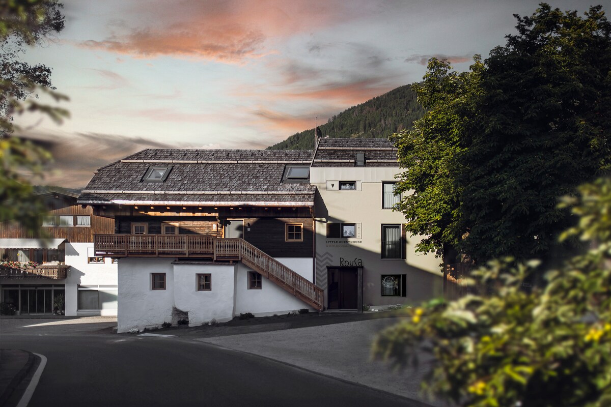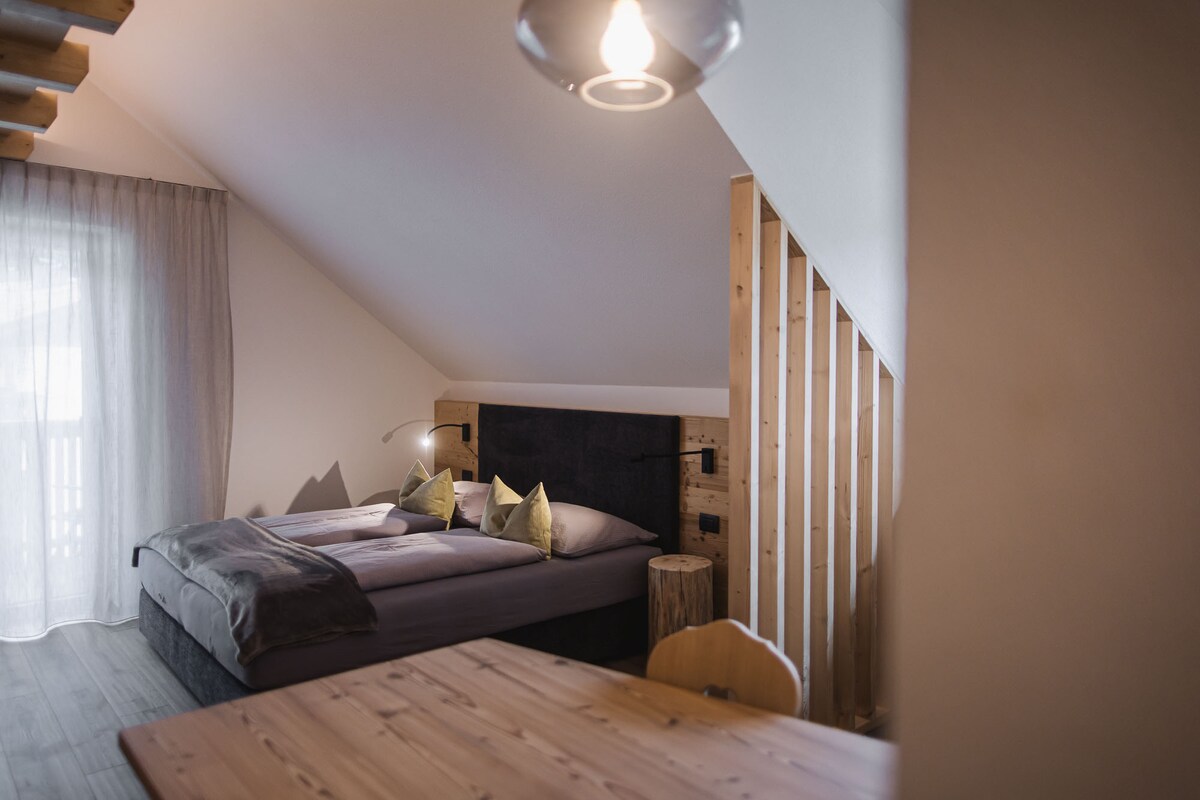 Welcome to the Monte Sole Suite, your luxurious retreat in the South Tyrolean Alps. Enjoy light-flooded rooms with large window fronts and breathtaking views. Our suite offers modern comfort and high-quality furnishings. The proximity to nature can be experienced through a spacious terrace and a large garden with an outdoor sauna. In just 5 minutes you can walk to the ascent facility to the Kronplatz ski resort.