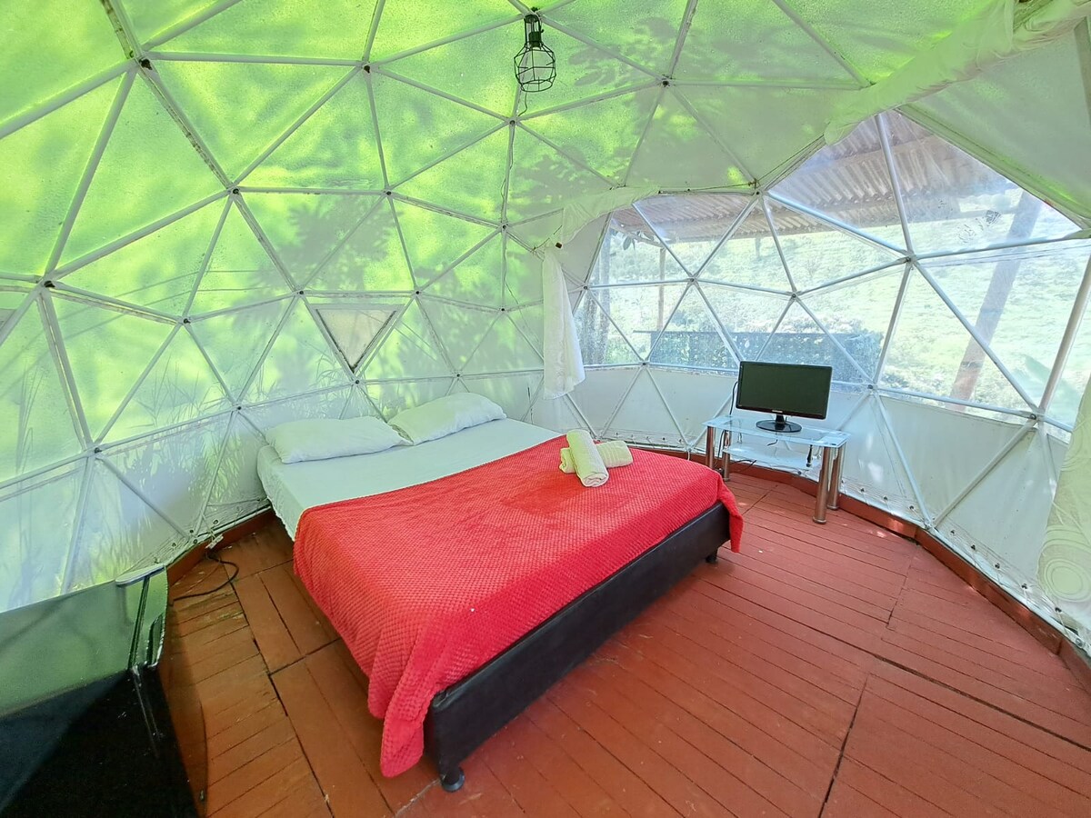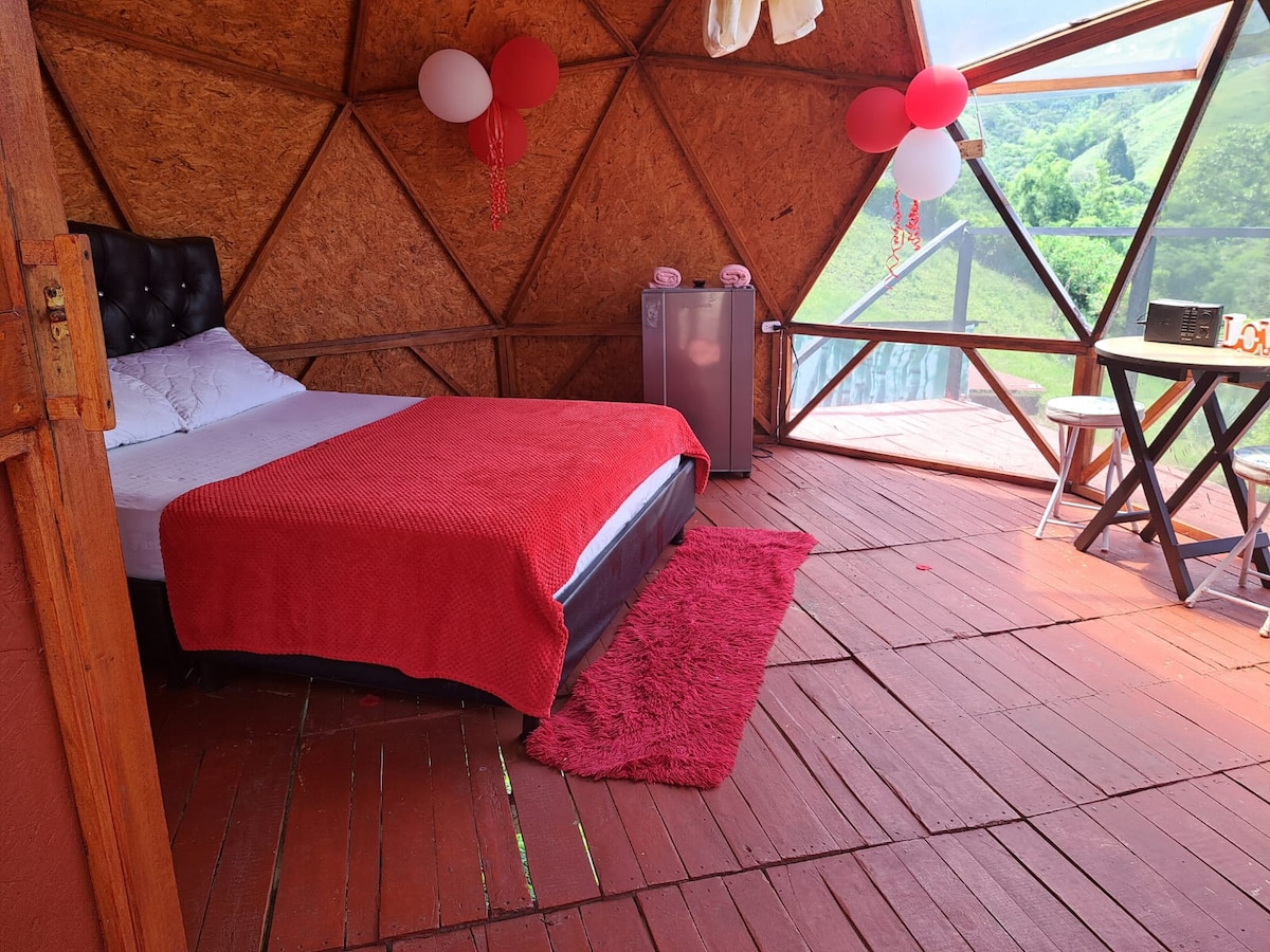 Our GLAMPING QUERENDONA consists of one comfortable dome with a Queen-size bed, private jacuzzi, a complete bathroom, a balcony, a dining room for two and a catamaran Mesh, all in an area of 50 square meters. GRAN VISTA Glamping and Suites is the country accommodation with the best view of Pereira and only 15 minutes from the city center. Breakfast included and exquisite menu for dinner, prior reservation.