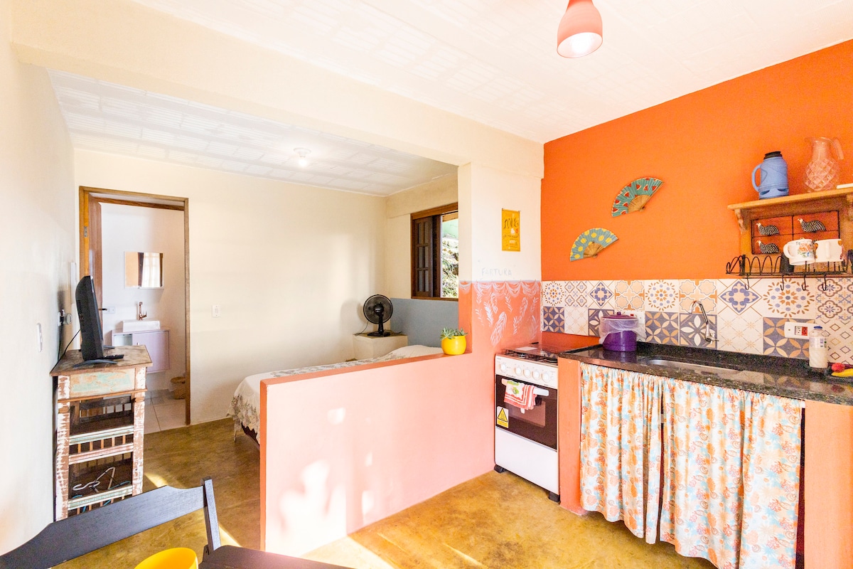 Couple Suite in the center of Ilhabela. Peace and practicality! Here is your refuge just a few steps from the shops and beach in the Perequê neighborhood - on a very quiet residential street, but 550 meters from Perequê Beach and the main avenue. Very close to the beach, restaurants, bars, market, Ardhentia shopping mall, pharmacy, bank, gas station, bus stop and tourist agencies with easy access to all regions of the Island and the best: in a charming, cozy, private and equipped en-suite. Welcome!