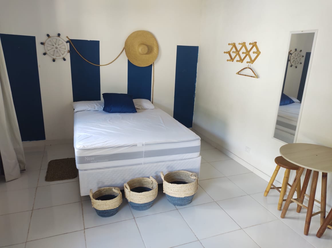 Afras Flats is a project by a group of friends who idealized it for their own use and rentals. Completed in Dec/2020, it offers a comfortable stay option at a fair price. This is the 1-bedroom flat. It is located 400 meters from the beach (only 2 blocks). It has a swimming pool with whirlpool and wet bar, facing the common area with barbecues and a deck with sun loungers. Highly family-friendly atmosphere. Parties and loud noise are expressly prohibited at any time.