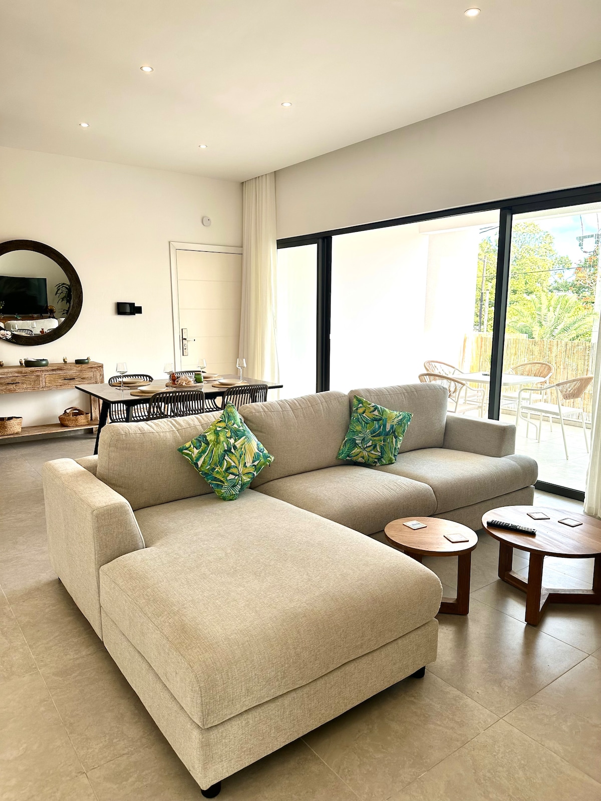 Luxury Beachfront Apartment with Unmatched Ocean Views. Wake up to breathtaking, uninterrupted ocean views. This 5-star beachfront apartment offers the perfect blend of comfort, privacy, and effortless coastal living. Set on the ground floor, the villa opens onto a spacious terrace, seamlessly connecting indoor and outdoor living. Just steps away, enjoy a sparkling pool overlooking the beach. The apartment features a modern open-plan living space all over looking the ocean.