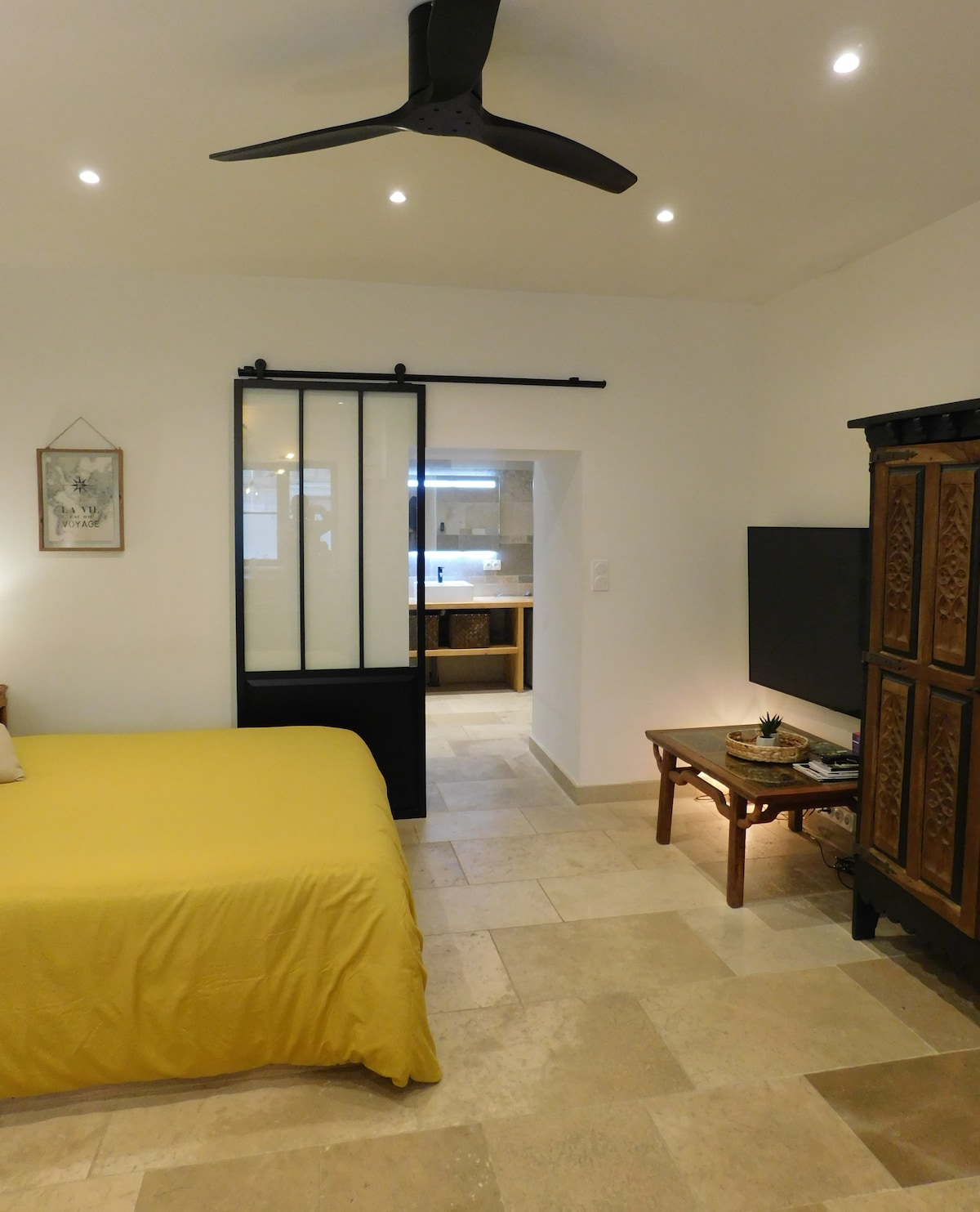 Medieval 14th century (1390) Guard Tower in the historic heart: 70 m² loft located on the ground floor – pedestrian alley Architectural elements of the period: pointed arches, gate for guards and horses The loft has all the elements of modern comfort: equipped kitchen, spa bath, TV with Amazon Prime Located on a quiet street in the historic center behind the ramparts, close to parking lots (30 m), you can, without using the car, walk through the alleys of the old town on foot.