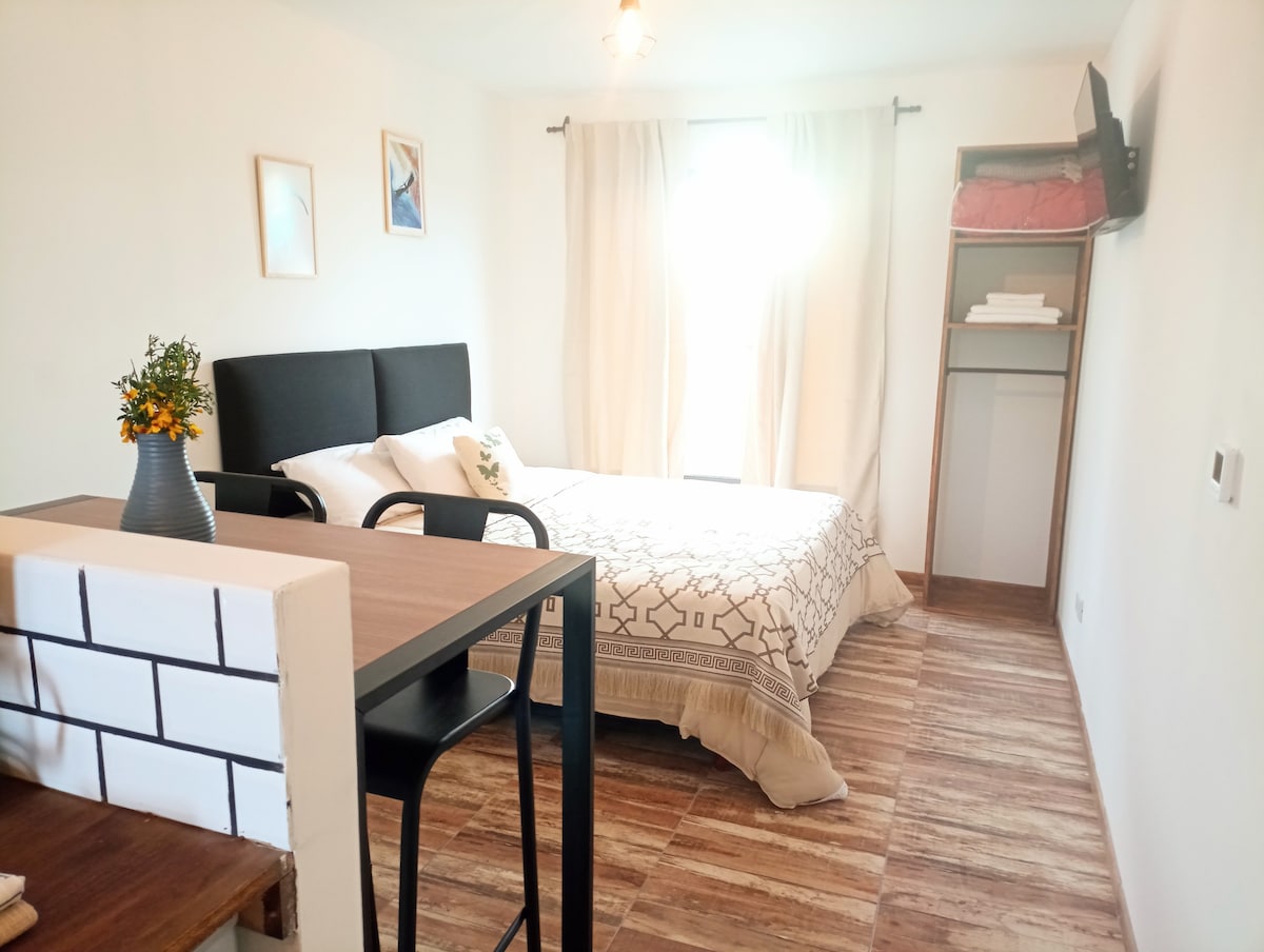 Cozy home in El Calafate, up to 2 people. Bedroom with a choice of a double bed or twin beds. Equipped with all the amenities, with everything new. Located in the central area of the city, 3 blocks from the commercial area, 3 blocks from the Laguna Nimez Nature Reserve, and 1 kilometer from Lake Argentino. Easy access to El Chaltén and Torres del Paine. Please let us know if you need any further information!