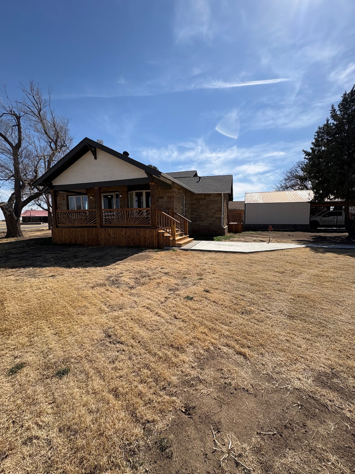 Located just 1.5 mile off of Hwy 54, the Arrow Bar Ranch Guest House is a completely renovated 100+ year old farmhouse. Located 1/4 mile west of Hooker, OK on a working ranch, guests will receive a complimentary package of hamburger from the Arrow Bar Ranch Beef herd. The house comes with a 2 car garage, wifi, coffee/tea, a small bar/fridge in the basement as well as a fully stocked kitchen. It has surround system for watching movies, and smart TVs for streaming.