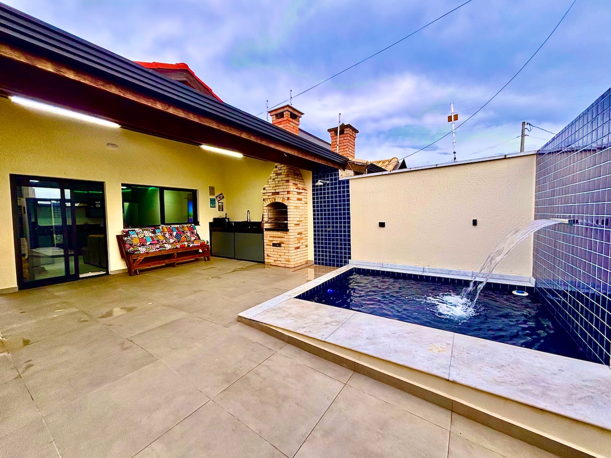 Relax with the whole family at this peaceful place to stay! Beach, pet friendly and happiness 700 meters from the beach shore. Cozy house for 6 people and your pet, a few steps from the beach! Close to markets, pharmacies, wineries, bars, restaurants and shops. With a large backyard, a garage for 4 cars, a garden, a swimming pool, and a barbecue area. Ideal for relaxing and having fun. Wi-Fi, cable TV, NETFLIX, board games, Monopoly, dominoes and cards, everything you need for a perfect stay.