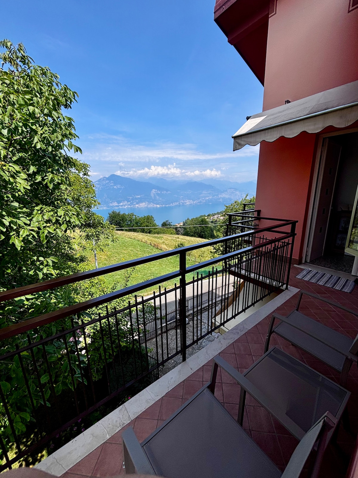 Homemade breakfast included Villa with Panoramic Lake Garda view with easy access to the beach and nearby services, 3 min. driving. Pool open --> Beginnig of spring Includes Fully served kitchen w/garden view Bright living room w/garden view Workspace&books Bathroom w/shower and tub Toiletries Hair dryer and washing machine Master bedroom Secondary bedroom for2 Sofa bed for2 Private terrace w/lake view. BBQ Parking AC Children Play area Fenced Pool w/lake view Breakfast Blankets/towels Wifi