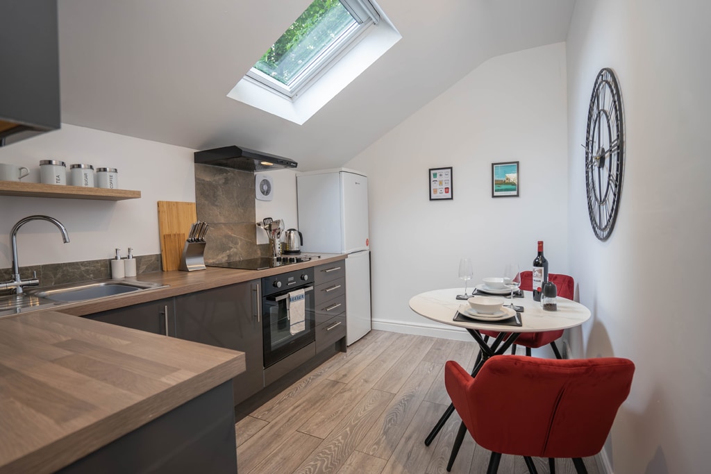 A spacious, character-filled one-bedroom flat on the ground floor, overlooking Christ’s Piece Green in central Cambridge. Kings is the largest and most established of our three sister apartments, offering a comfortable sofa bed, open-plan living, and an unbeatable location. A favourite with returning guests.