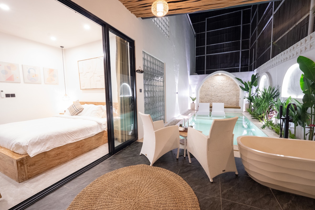 Discover our stylish 2BR villa with a private pool. Prime location for easy access to supermarkets, restaurants, & more. Enjoy a cozy living space, air-conditioned bedrooms with ensuite bathrooms, & a fully equipped kitchen. Book now for a stylish & relaxing vacation! ► Please note: 1 FREE airport pick-up to the villa (non-exchangeable or substitutable).