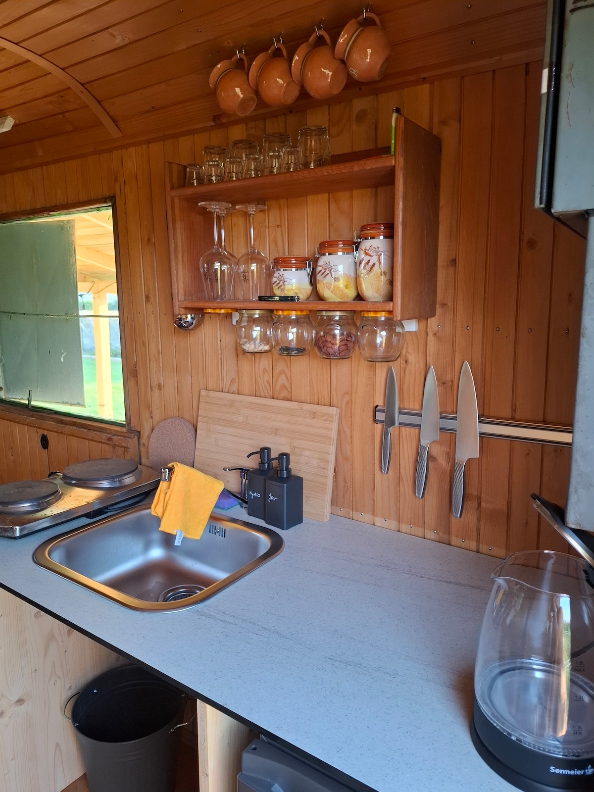 Tento jedinečný romantický únik z reality si zamilujete. Naša maringotka sa nachádza na kraji mesta vedľa nášho vinárstva, v pokojnom prírodnom prostredí. Uniknete tu ruchu mesta, a ak prídete za zábavov, kultúrou, či gastroturizmom, do centra sa dostanete pešo za 15 minút. V maringotke je zavedená voda aj elektrina, v exteriéry solárna sprcha a separačná latrína. Počas mrazov je však voda vypnutá, k dispozícii máte veľkú bandasku s kohútikom s pitnou vodou, radiátor a piecku na drevo.