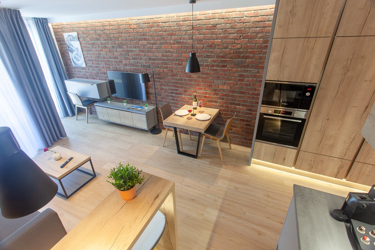 Stay in 1 of a Superior Studio accommodation located in the heart of the city. -Designer furniture (Saba Italia, Perdali and more..) -Box spring bed from cocoon luxury beds, bed size: 160 x 200 cm, satin bed linen, bedding like in luxury hotels -comfortable sofa, smart TV -own dining area and desk -fully equipped kitchen -Access to the house and apartment using a PIN with advance online check-in -Washing machines and dryers in the basement via WeWash -weekly cleaning
