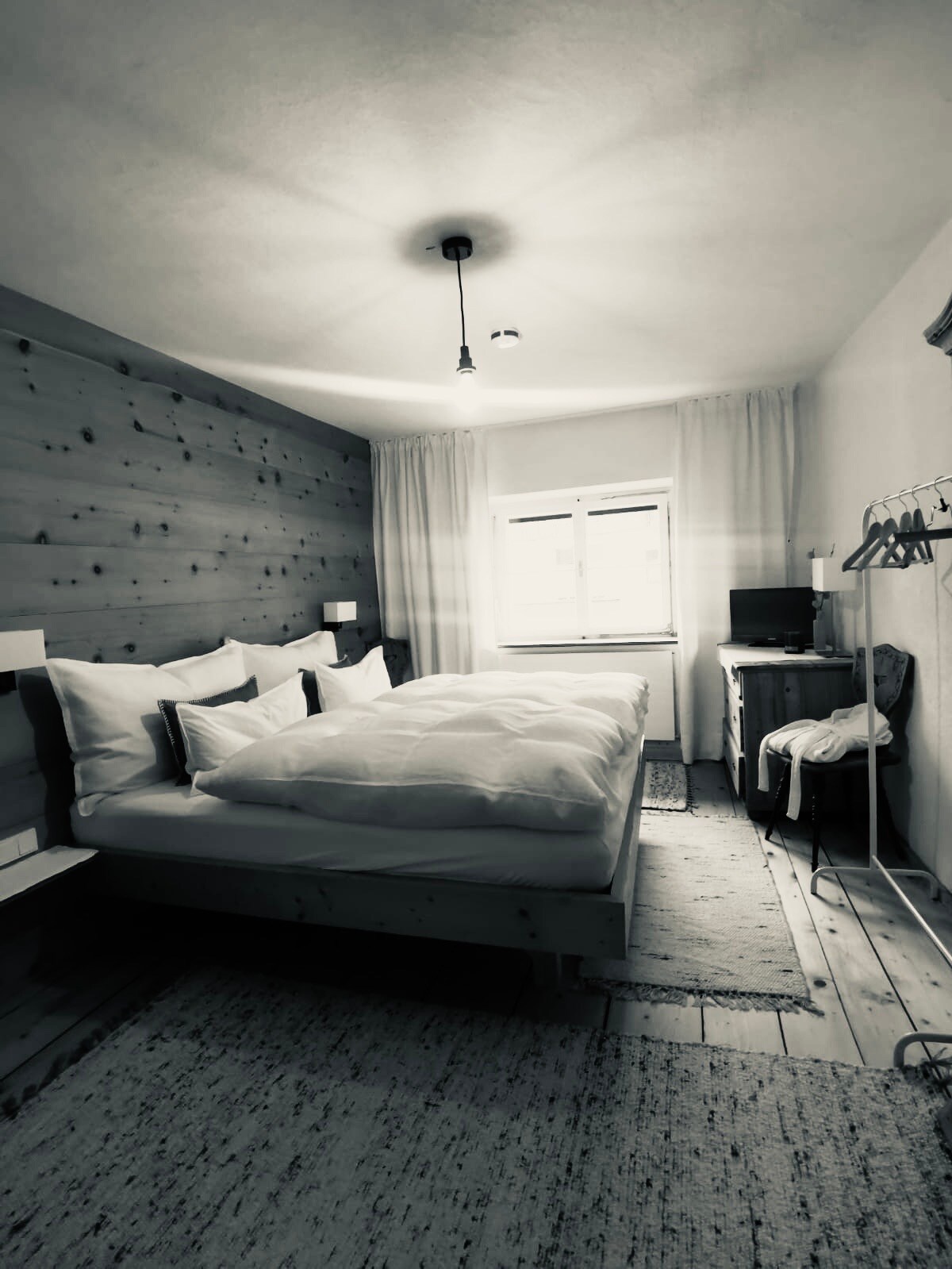 Our balcony room with private shower/toilet has a size of 27 square meters. The sleeping-living room is one room. It is located on the second floor with magnificent mountain views. In our separate farmhouse parlor you can enjoy your breakfast (photo dining area) - does not belong to the apartment! But it's in the same house. Of course, the apartment is lockable. ARRIVAL Saturday or Sunday Please pay the tourist tax on site. €2.80 per person per day Minimum booking 6 days From May to September, minimum booking is 7 days