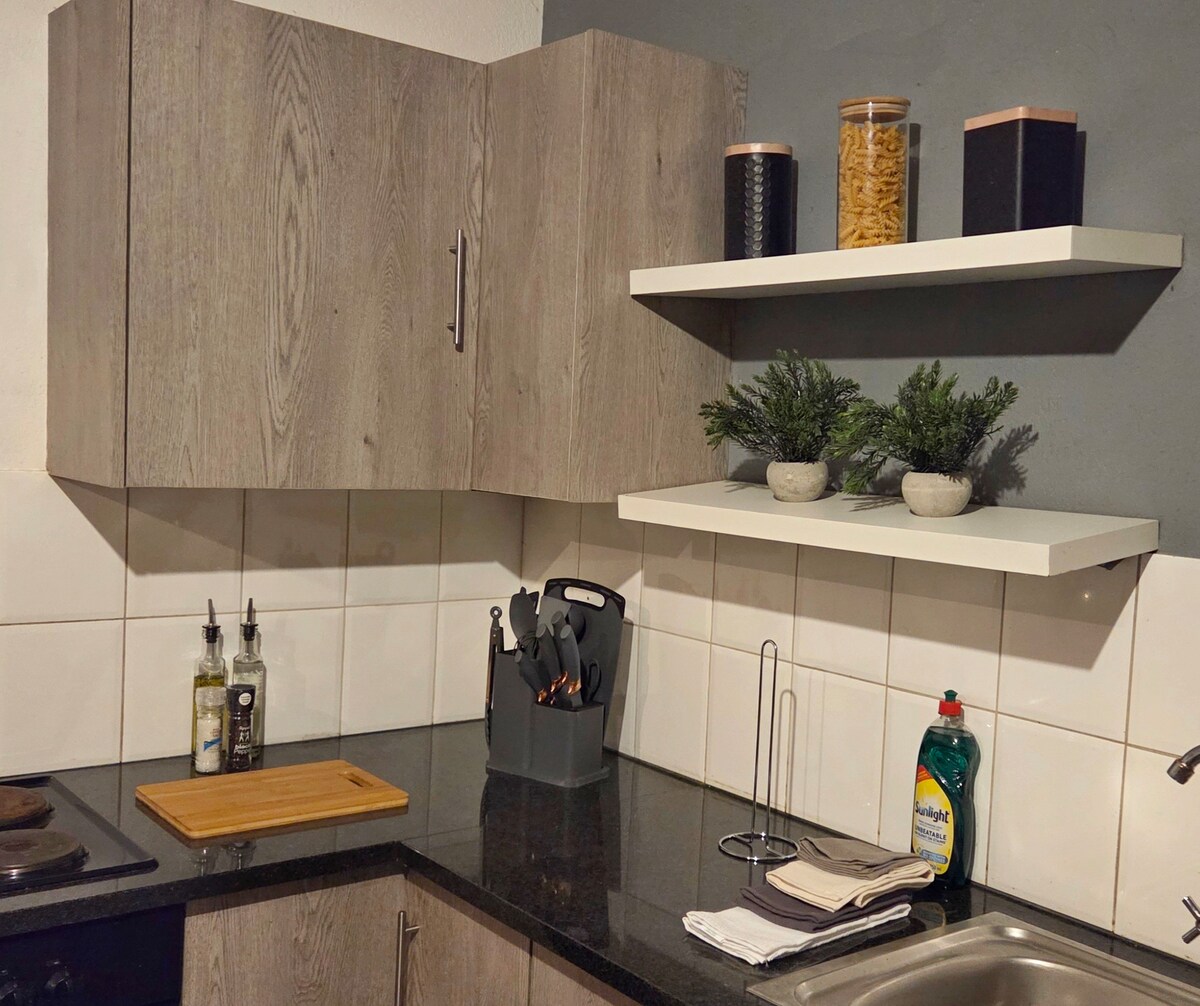 You won’t forget your time in this romantic, tranquil and private unit. Newly renovated in a modern yet classic style, ideal for a couple getaway or business visit. The unit is fitted with a lovely swimming pool, large outdoor patio and private braai area, a must visit!! HWE is one of the most secure places to stay in the area and you are just 2.5 km away from the town which is cozy with everything that you will need. NO CHILDREN ALLOWED.