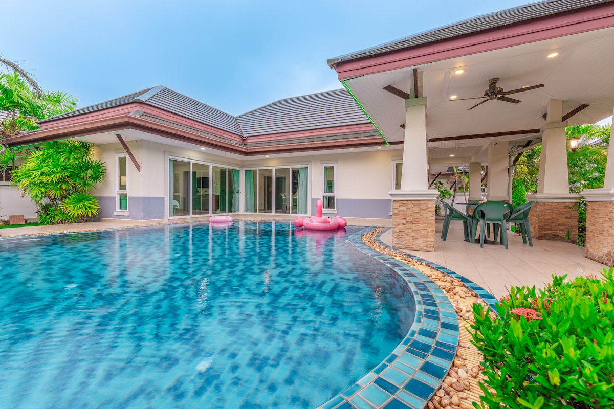 Pattaya 4BR Pool Villa-Grp BBQ, Karaoke&Pool Table
