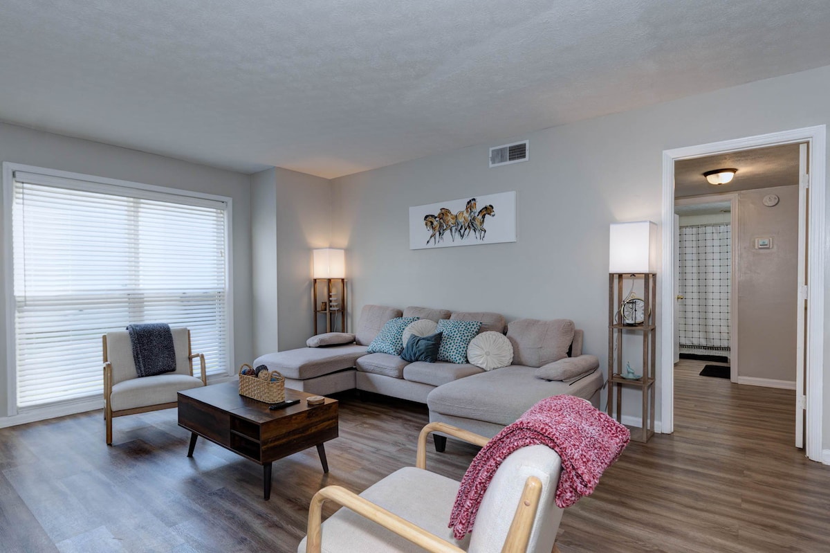 Experience the best of Columbus in this beautifully renovated apartment. Step inside to find a stylish living space, with all the amenities you need for a comfortable stay. The kitchen is fully equipped with modern appliances and nice countertops. Relax in the comfortable living room with a smart TV. Head to the bedrooms and sink into the luxurious mattresses with Vera Wang bedding. located near popular attractions such as Lakebottom Park, The Riverwalk, Downtown & FT Moore