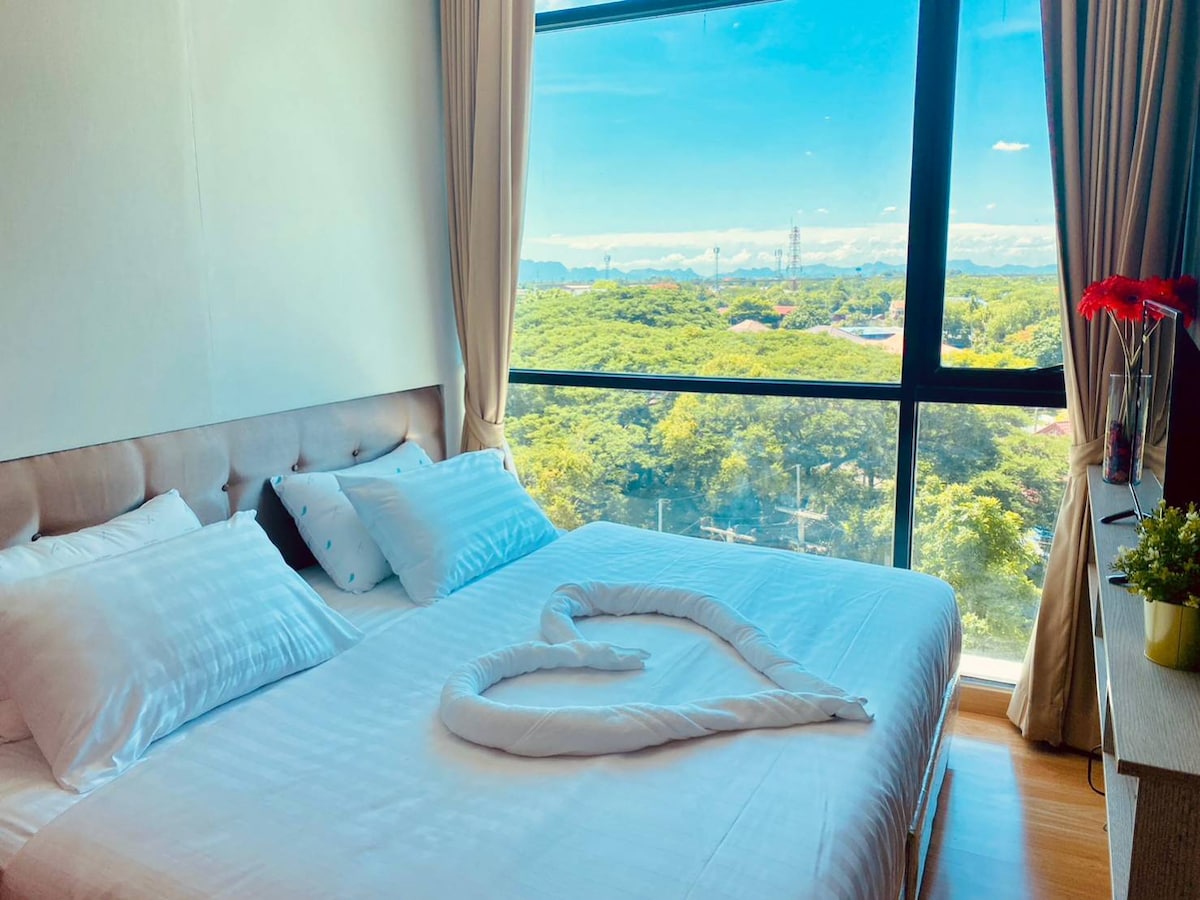 Self check- in. Dream living on your vacation stay at The Sunshine Khaoyai with panoramic pool view from my balcony on a high floor. You are surrounded by undulating hills and sprawling trees with a peaceful atmosphere. The Apartment is secluded and on a peaceful and quiet side of the building. Comfortable bed, good water pressure, high-speed internet. You can enjoy all the facilities such as a swimming pool, fitness area, open plan lobby, EscapeYard park, Green Oak bistro and Rooftop garden.
