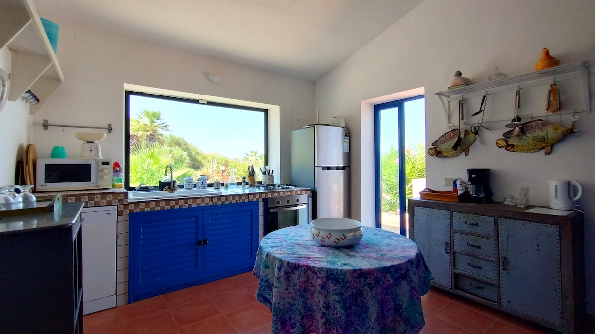 170 meters from the sea between the Tonnara and the Zingaro Nature Reserve alternated by several coves, single floor and equipped with mosquito nets. The garden, with outdoor shower, is around the entire house, convenient barbecue with sink, sun loungers, sofas and outdoor tables where you can have lunch, dinner or spend pleasant evenings Down to the sea, two coves for the exclusive use of the residence, reachable by stone steps, in the nearby Baglio, Bar Tobacco, Pub, Restaurants, pizzerias, Market, ATM