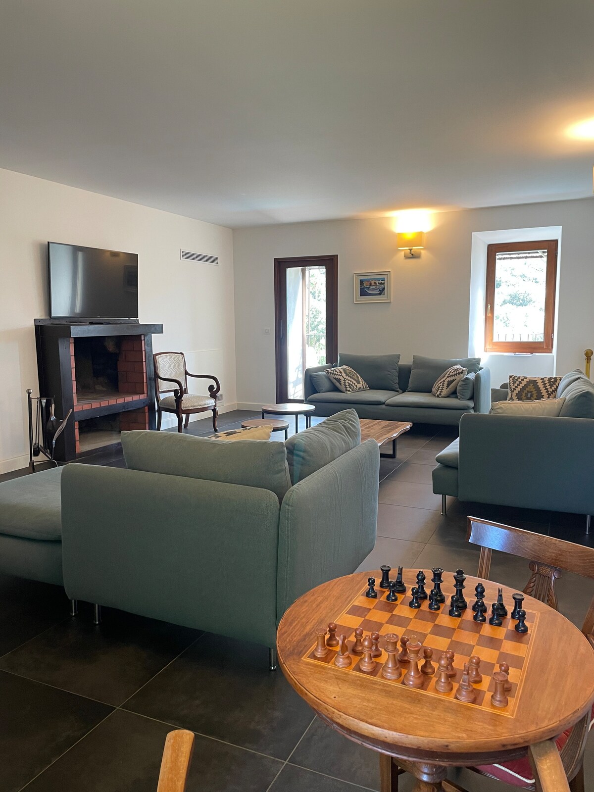 Old vaulted stone wine cellar, renovated. The stone walls and vaulted ceilings as well as its old terrazzo floor tiles have been deliberately preserved so that the room retains its charm and authenticity as much as possible. You will find all the comforts of a large, relatively modern studio with its equipped kitchen, its fully renovated bathroom and its high table for your meals. For your winter evenings, know that the fireplace works perfectly.