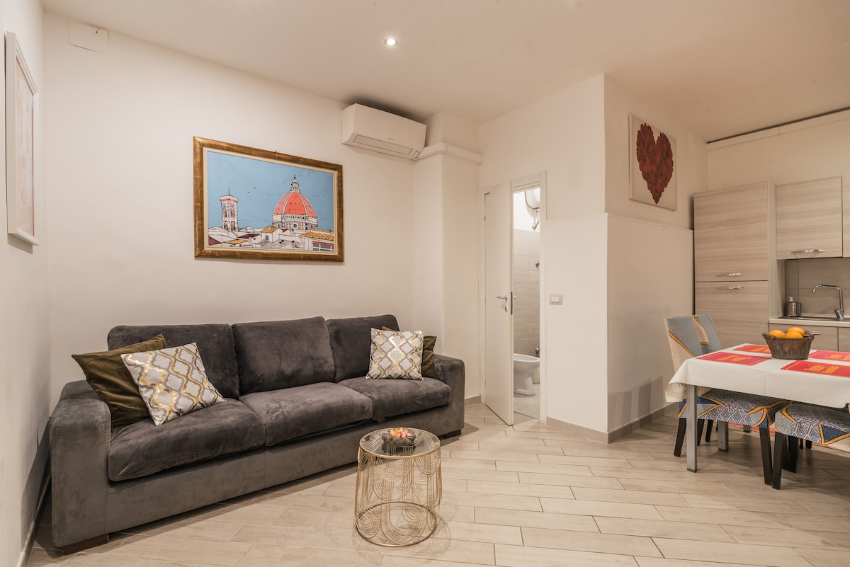 A quiet retreat in the center of the city. You can begin your unforgettable journey through history by staying in a lovely apartment located on a convenient second floor without an elevator of an ancient building dating back to the 1400s. The setting is truly unique and quaint. Windows on the inner courtyard allow you to fully enjoy the central location in an intimate and quiet setting. Attention to detail and care for the furnishings lend charm and elegance