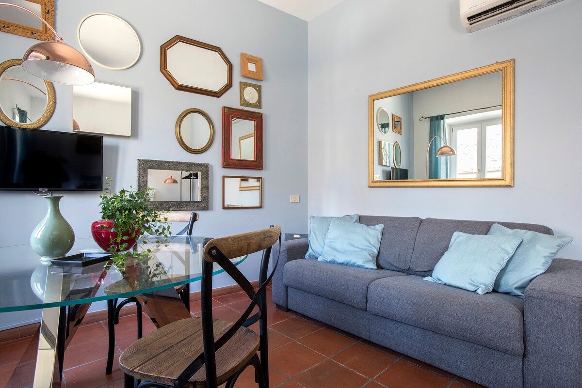 An 83-square-meter loft, elegantly renovated in the heart of Rome. Located a few steps from Campo de' Fiori, Piazza Navona, Trastevere and the Pantheon. The finely furnished apartment has Wi-Fi, air conditioning, TV, equipped and functional kitchen, living room, bedroom upstairs, two bathrooms, wardrobe and various security devices. The ideal starting point for your stay in Rome!