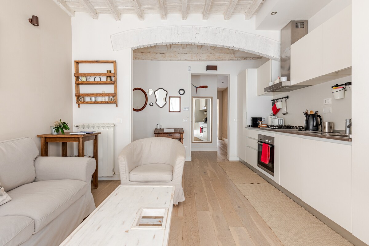 The house is a stone's throw from Ponte Vecchio, Palazzo Pitti and Boboli Gardens, on the uphill road that leads to Forte Belvedere. Located in the city's historic center, just a ten-minute walk to the Duomo, Piazza della Signoria and the Uffizi Gallery. Equipped with a separate entrance, it can accommodate up to four people. Consisting of a double bedroom, a living room with a double sofa bed, a bathroom and a kitchen, fully furnished with all amenities.