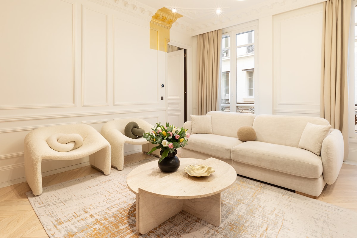 Discover this stunning apartment, high-end apartment fully air-conditioned, combining modernity, design and luxury, thanks to the talented architects of The Lander. Located in the famous rue Saint-Honoré, the location of this property is exceptional, right in the center of Paris, it is close to key cultural sites such as the Louvre Museum as well as the best addresses for shopping enthusiasts.