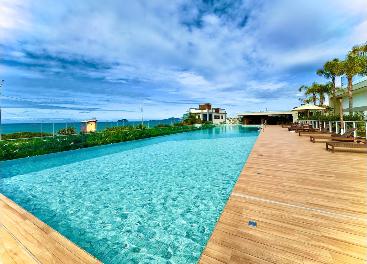 Full Home Club facing the sea. Finely decorated apartment, with sea view, new, with an en-suite plus two bedrooms, large balcony with charcoal barbecue in Home clube that offers a swimming pool with an infinity edge, children's pool, heated pool, wet bar, Jacuzzi, fitness center, sauna, cinema, game room, playroom, Pet space, Kids space, playground, hammock area, beach tennis court and etc. Exclusive access in front of the beach. About 15 km from Beto Carreiro World Park.