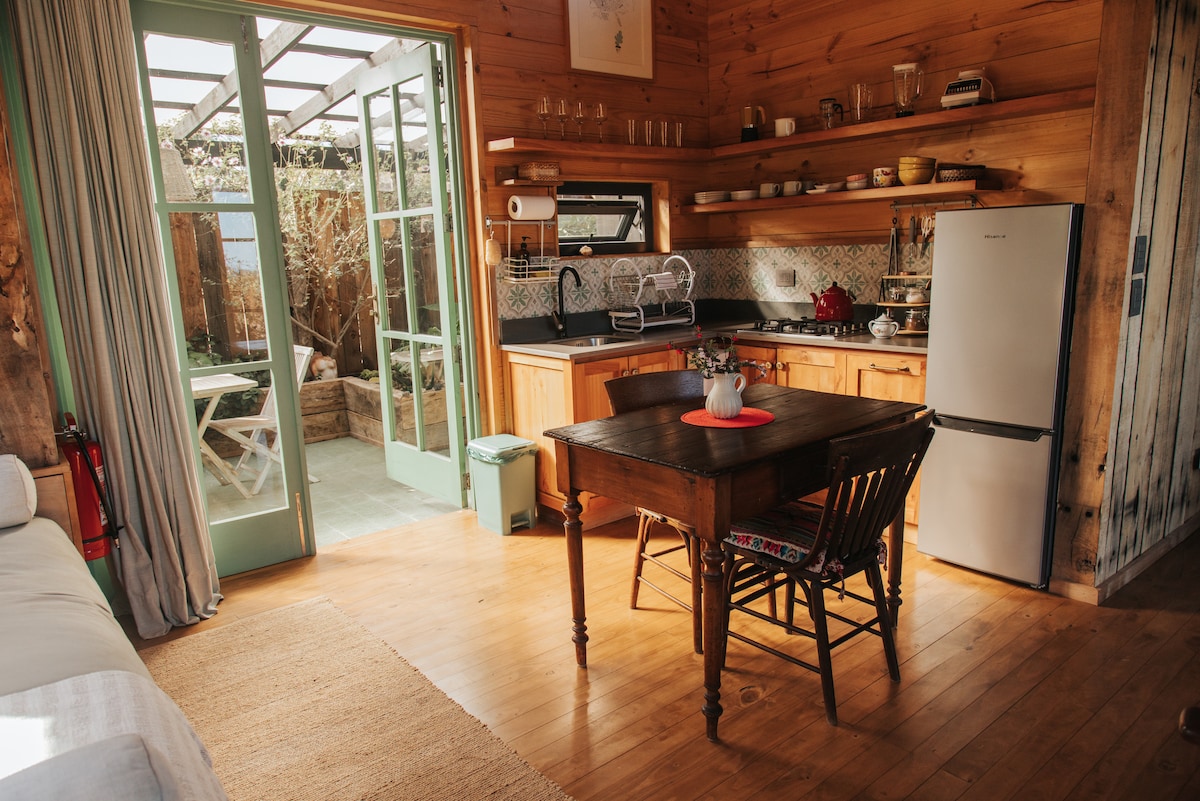 Wooden cabin with hot tub & Starlink, overlooking Cáhuil Lagoon and native forest. Secluded for silence, yet close to beaches, sightseeing, restaurants, and shops for all essentials. Features sunny terraces, skate ramp, fire pit, and gas/wood BBQs. Full cell signal and fast WiFi make it the perfect nature getaway. During winter season with rain a 4x4 car is recommended.
