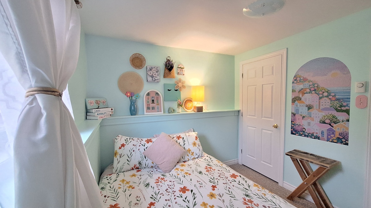 Experience comfort & tranquility in this beautifully renovated 2-bedroom, 1-bathroom duplex unit. Each bedroom is furnished with a queen-sized bed, while the living room offers a versatile daybed that can be converted into either 2 twin or 1 king bed. Enjoy spacious backyard perfect for dining where you can enjoy the serene atmosphere & occasionally spot deer passing through. Centrally located in the quiet neighborhood, close to shops, restaurants, and the scenic New Glasgow bridge.