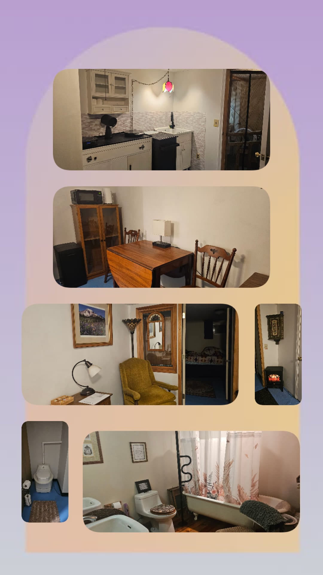 Country setting, private and quiet location. Ground level apartment, easily accessible for all. No stairs to navigate. You will have your own parking spot directly by your private entrance door. Dinning/sitting area with daybed. Kitchenette. Comfortable TV sitting area. One bedroom. Large bathroom with double sink and heated towel rack. Large walk-in closet off of bathroom with 6 drawer dresser. Beautiful original professional artwork painted by my Mother complete the space.