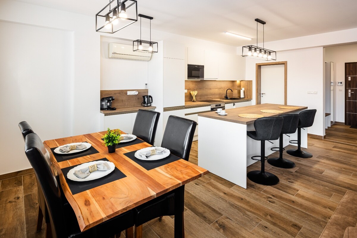 Welcome to a modern apartment with barrier-free access that will ensure a comfortable stay for a family with children, but also for couples or solo travelers. It is located in a quiet location, just a 15-minute walk from the city center and 20 minutes from the bus and train station. Nearby is the Inčučuna children's playground and a number of services. There is above-standard kitchen equipment, Wi-Fi, a washing machine with a dryer, free parking in the building and a lot of board games. We will also be happy to prepare a baby cot on request.