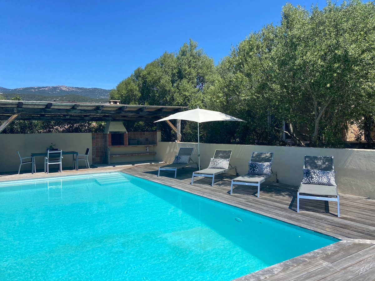 2 personnes, 1 chambre. Villa de 70m2 avec piscine privée, un jardin arboré sans vis à vis. Idéalement située au calme. La villa offre un extérieur soigné avec un vue sur la montagne. Atmosphère intérieure spacieuse ou charme et confort s'unissent pour créer une ambiance singulière. Son emplacement permet de vous déplacer facilement vers les plages, la montagne, le village de Porto Vecchio et de tous les commerces. Un lieu rare ...