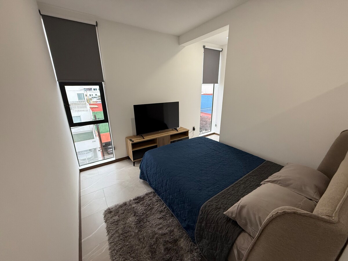 Enjoy a stylish experience at this centrally-located place. The English Loft is 7 minutes from El Centro of Morelia.This all-new modern loft can host up to 3 people. It includes 1 queen bed and a sofa bed. It also includes air conditioning, cable TV, and free internet. The English Loft provides a great space for relaxing while planning your stay in Morelia for work or play. It is located in a safe Colonial with host access for any additional assistance.Reserved Street Parking or free pension.