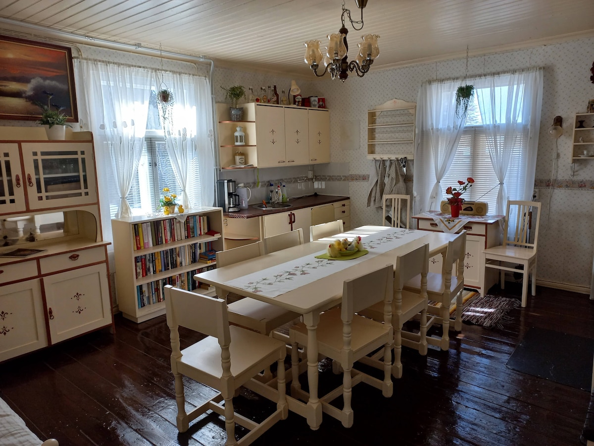 Old grannys house next to our farm. In Kiikka, Sastamala you can feel Finnish nature at its´s best. Fields and forests next to the house and river Kokemäenjoki nearby makes this place unique. At your own garden you can have your own privacy.