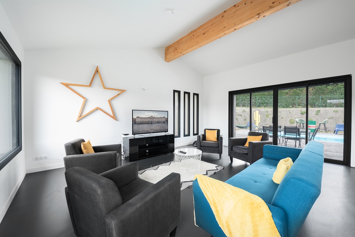✔️ Entire house of 130 m²: space, comfort and privacy ✔️ 4 comfortable bedrooms: ideal for families, groups or professionals ✔️ Bright living room: perfect for relaxing ✔️ Fully equipped kitchen: short or long stays ✔️ Swimming pool, sun loungers and unobstructed views: enjoy the sun ✔️ The neighborhood is quiet and residential. ✔️ Close to transport ✔️ Quick access to the centre of Toulouse ✔️ Fast Wi-Fi: remote working possible ✔️ Sheets provided ✔️ Free parking on premise