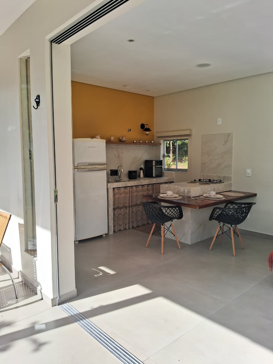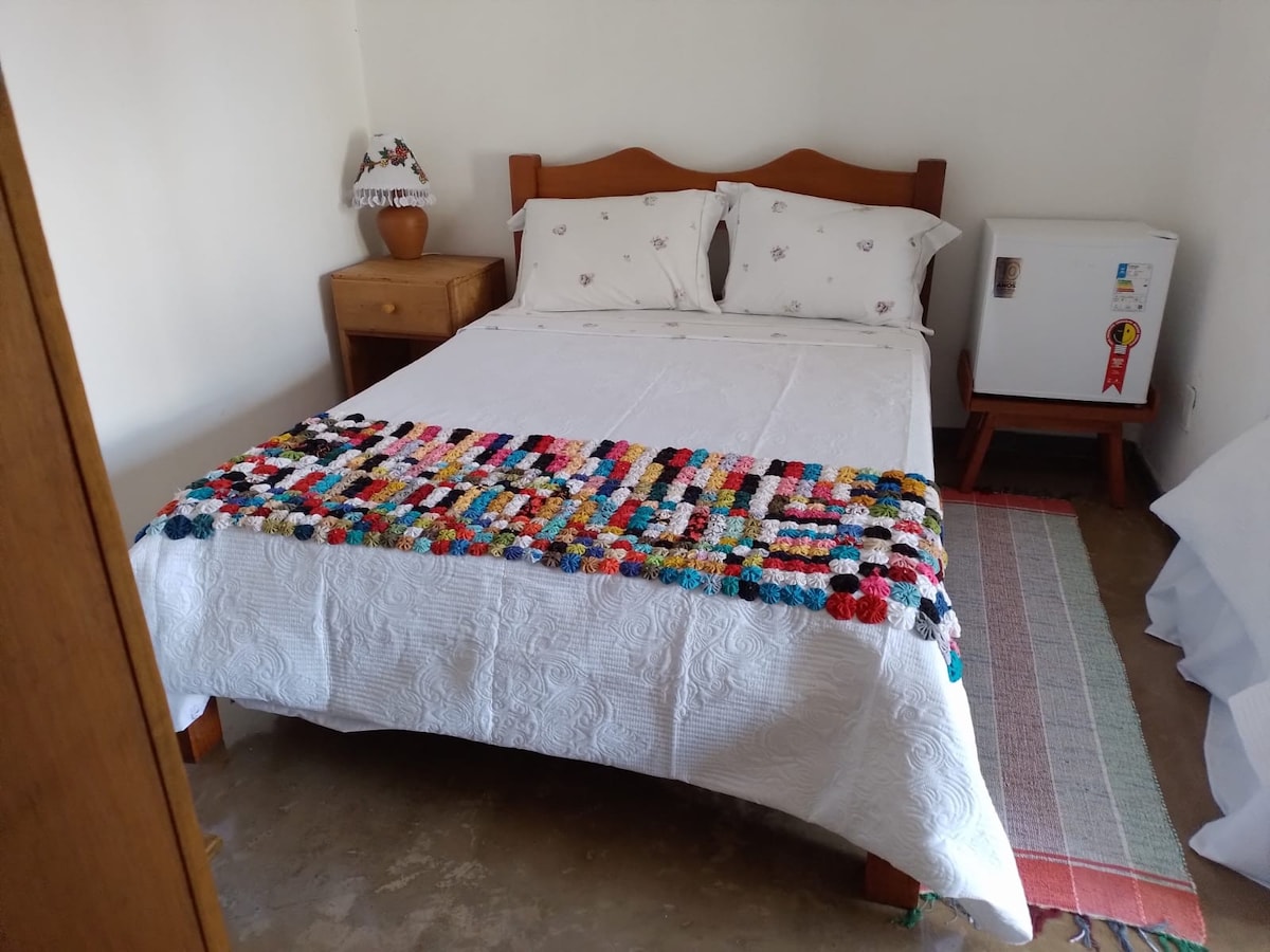 Large apartment with a privileged location, only 300 m from downtown on a quiet and safe street. Leave your car in the private parking lot and with a 10-minute walk you will be in the middle of the restaurants, bars and attractions of charming Pirenópolis. We offer comfort and privacy, a queen-size bed, a private bathroom, and everything you need for a good snack or breakfast. Airy, with windows and a balcony overlooking the garden, they ensure a relaxing stay. 150 m away there is a supermarket and pharmacy.