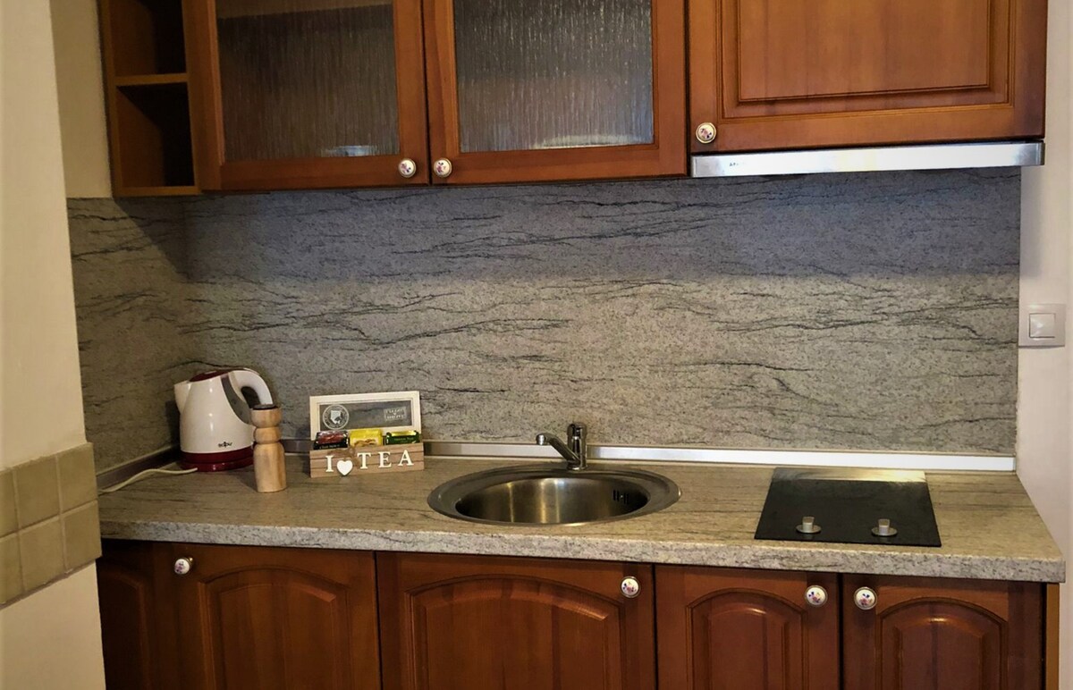 Enjoy the quiet and peaceful atmosphere of this conveniently located place. We guarantee the cleanliness and comfort you'll need after a hard day on the slopes. The studio is suitable for skiers as it is only 10 minutes from the ski slopes. And if you feel like eating something cooked and warm, you can cook something quickly in our nice kitchen. Studio №414.